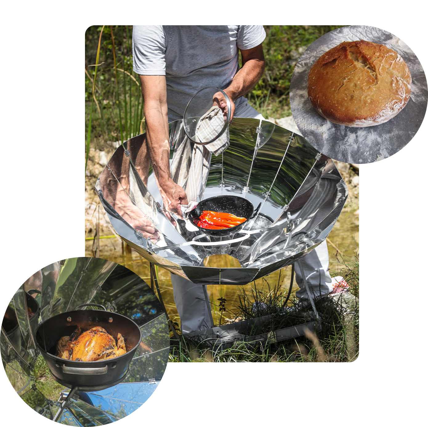 Le chef incontesté de la cuisson solaire ! Abandonnez-vous au délice d’une cuisine naturelle, saine et pleine de saveurs. Le SUNplicity ? Un four solaire nomade, 100 % français, qui vous accompagne partout et transforme chaque repas en moment unique.
